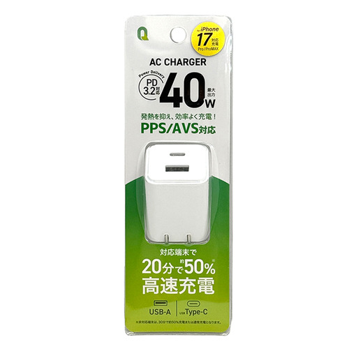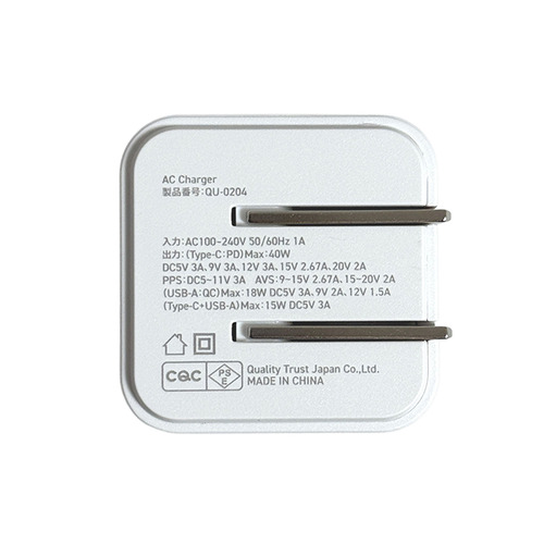クオリティトラストジャパン QU-0204WH ACアダプタ TYPE-C1ポート/USB1ポート PD3.2 40W対応 ホワイト