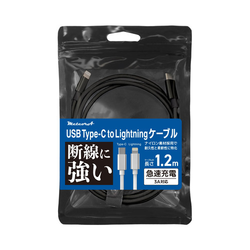 meteora CBLC001BK Type-C to Lightningケーブル 急速充電対応 1.2m ブラック