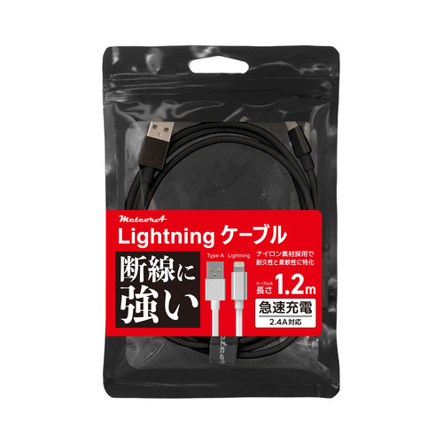 meteora CBLG001BK Type-A to Lightningケーブル 急速充電対応 1.2m ブラック