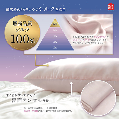 モリシタ MORIPiLO シルクまくらカバー 43×63cm ヒアルロン酸 テンセル ピロー ピンク