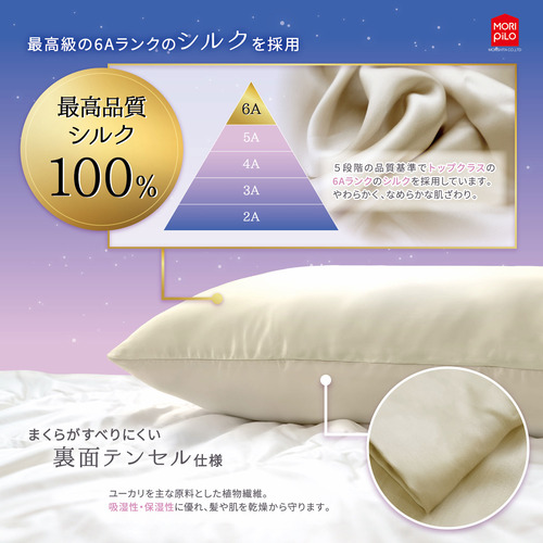 モリシタ MORIPiLO シルクまくらカバー 43×63cm ヒアルロン酸 テンセル ピロー ゴールド