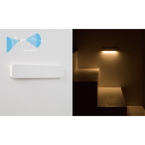 器具感からの脱却、壁面との同化する異物感のない美しい形状。配光・色温度・演色性をつきつめ、従来のセンサーライトにはない陰影を活かす美しい「あかり」を実現。