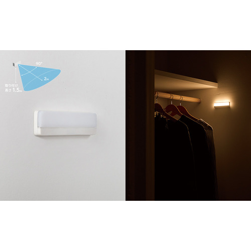 センサー:探知方式:焦電型赤外線センサー 探知範囲:最大:壁から水平90°垂直10°最遠2m ※取り付け高さ1.5m時