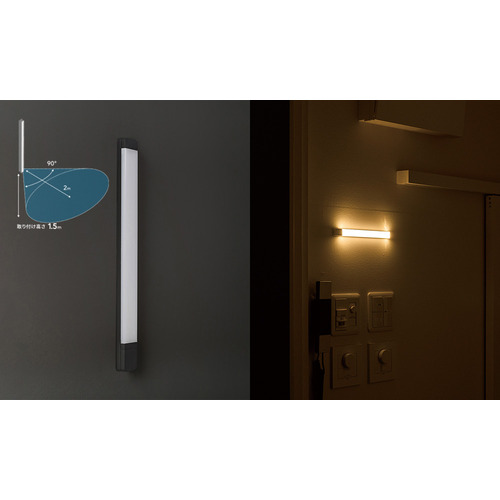 器具感からの脱却、壁面との同化する異物感のない美しい形状。配光・色温度・演色性をつきつめ、従来のセンサーライトにはない陰影を活かす美しい「あかり」を実現。