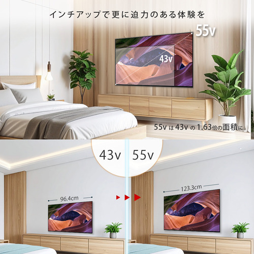 外形寸法(幅×高さ×奥行)[スタンド含む]:cm:【KJ-43X83L】96.4 x 56.3 x 6.9[96.4 x 62.9 x 26.6(標準スタイル)]