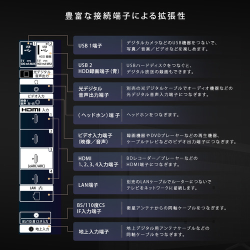 Google TV(TM)機能搭載なので、ネット動画や音楽、ゲームなどあらゆるジャンルのアプリに対応。また音声でのコンテンツ検索やテレビの操作が可能です。