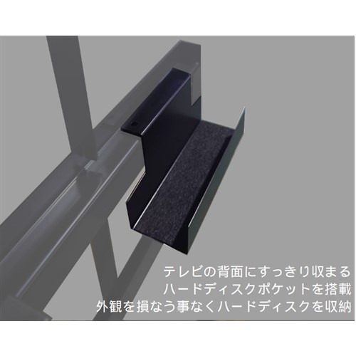 ●テレビの背面にすっぽり収まるハードディスクポケットを搭載。外観を損なう事なくハードディスクを収納できます