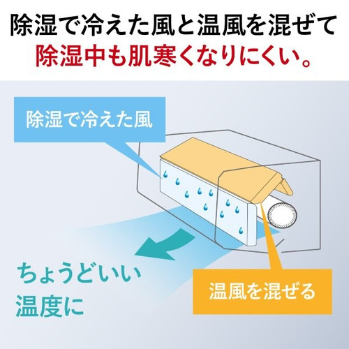 再熱除湿と冷房運転を自動で切り替えて、冷やしすぎを防止。