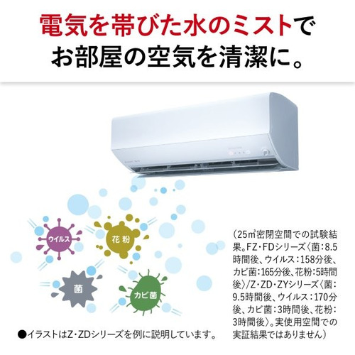 帯電させた水の微粒子が室内の空気中に含まれる菌、ウイルス、カビ菌の活動を抑制。