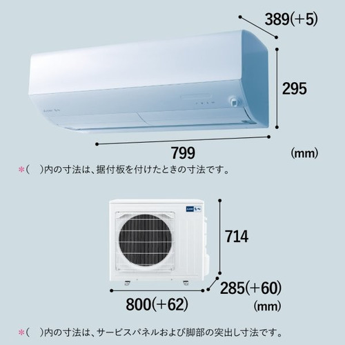 本体寸法:【室内機】たて389×よこ×799×高さ295mm【室外機】たて285×よこ×800×高さ714mm