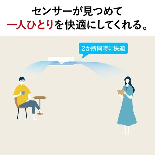 赤外線センサー「ムーブアイ」が人がいないことを検知すると、約3分で温度を抑えた弱めの運転に切替え。