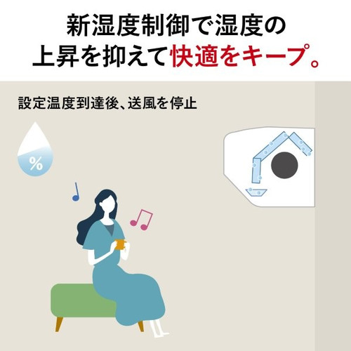 再熱除湿と冷房運転を自動で切り替えて、冷やしすぎを防止。