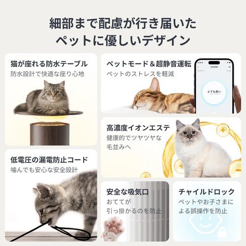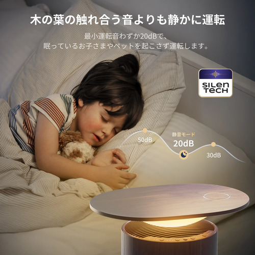1台5役、空気清浄・テーブル・ムードライト・ワイヤレス充電・アロマディフューザーの機能を一つに集約。