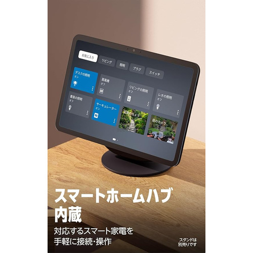 内蔵のスマートホームハブで、何千ものスマートホーム製品(別売)を簡単に接続できます。タッチスクリーン操作や音声でスマートカメラの映像の確認や照明の操作をしたり、特定の発話や在室検知などをきっかけに複数のスマートホーム製品を一斉に操作する定型アクションを行ったりできます。