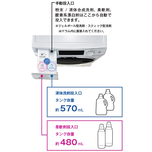 ●液体洗剤/柔軟剤自動投入搭載