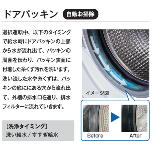 「乾燥補助フィルター&乾燥フィルター自動お掃除」、「パッキン自浄機能」、「お手入れしやすい排水フィルター」搭載で日々のお手入れを軽減します。