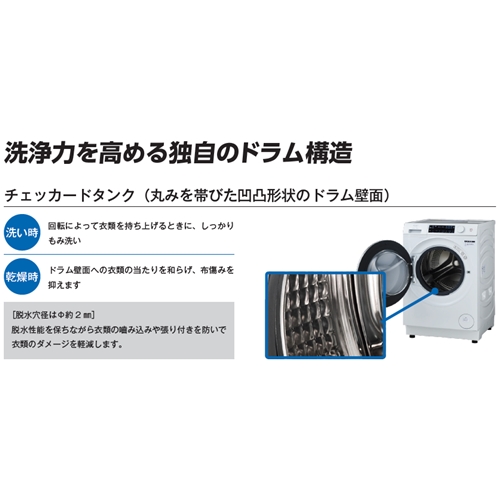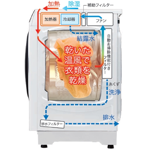 (2)衣類の傷み軽減(乾燥時に約65℃低温風で衣類の傷み、縮みを低減)
