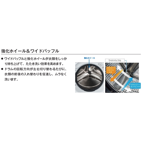 ・「ダブル伸縮ダンパー」搭載により、脱水時の振動を本体や床に伝わりにくく、揺れを軽減。