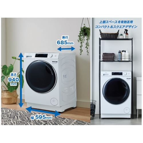 「ドラム式洗濯乾燥機は大きいから置けない」、そんなお悩みにお応えするコンパクトサイズ。一般的な防水パンにすっきりと設置できます。高さはわずか94cmでスクエアなデザイン。上部スペースが有効活用でき、サニタリー空間を自由にデザインできます。