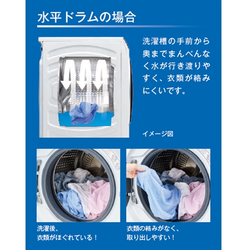 ●洗濯物が絡みにくく、洗いムラを抑えた水平ドラム