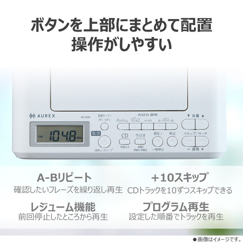 東芝 AX-CR30(W) CDラジオ ワイドFM対応 レジューム機能搭載 ホワイト