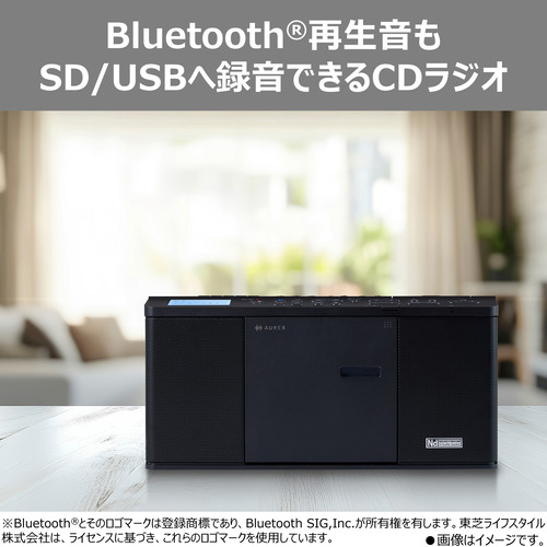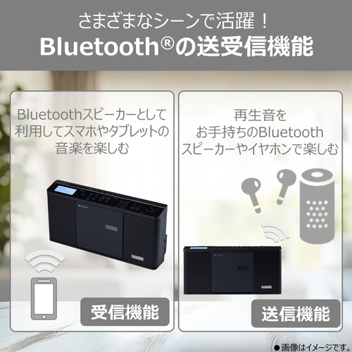 【電池持続時間】※東芝アルカリ乾電池(単3形乾電池6本)使用時:CD再生時:3時間 Bluetooth再生時:6時間 ラジオ受信時:14時間