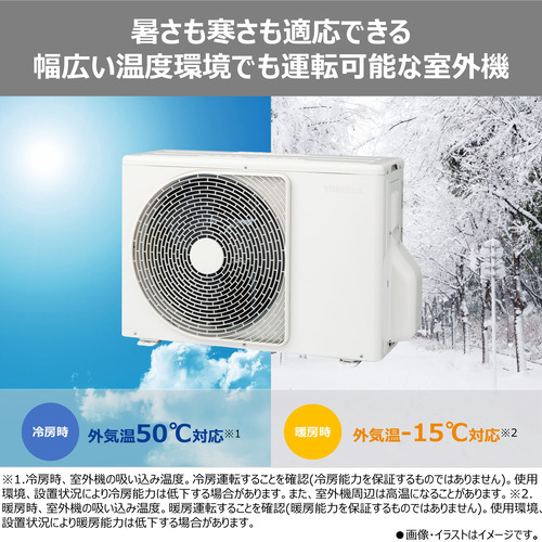 室外温度:冷房50度対応、暖房−15度対応