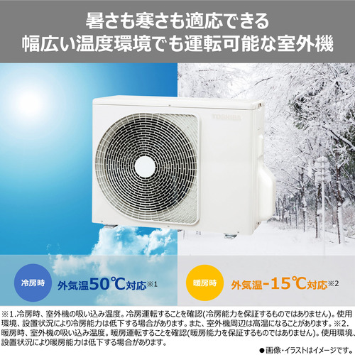 室外温度:冷房50度対応、暖房−15度対応
