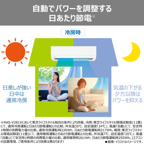 日当たりが弱くなると冷房を抑える。