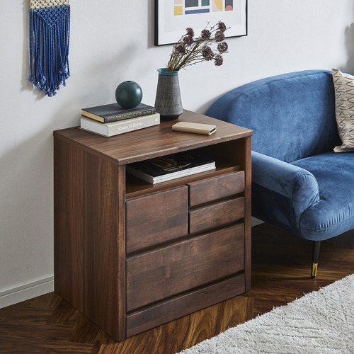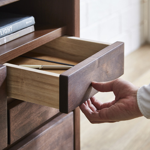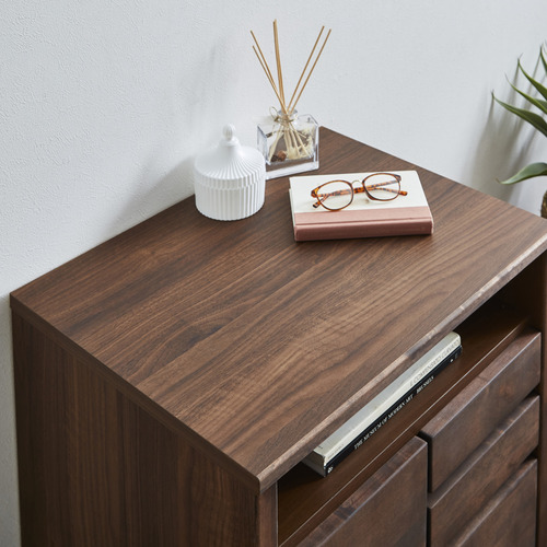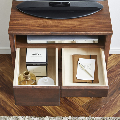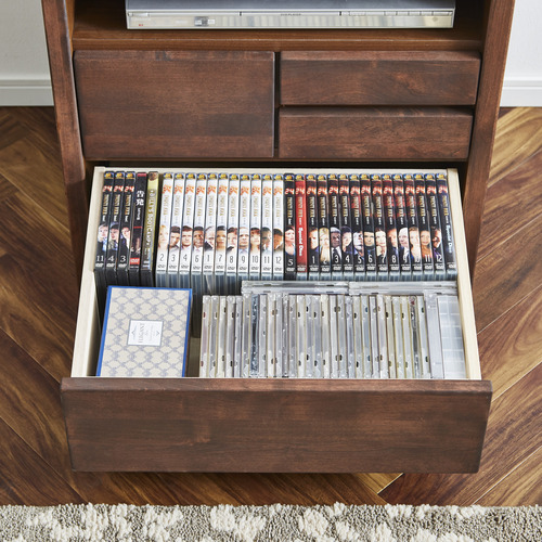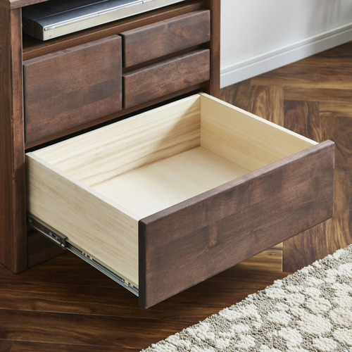 シンプルながらも収納力抜群のデザインで、AVチェストとしてだけでなくサイドチェストとしても使用可能。長引き出しにはスライドレールを採用し、奥までしっかり収納することができます。