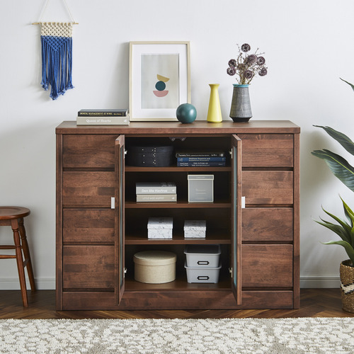 サンコウ サイドボード 「ティアラIII」 120サイド 幅118.8×奥行39×高さ88.5cm ミストガラス ダークブラウン