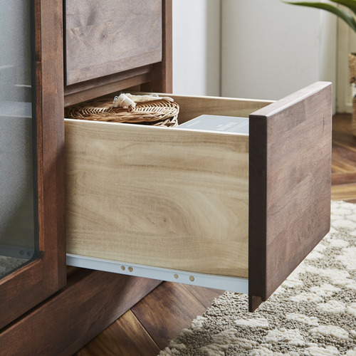 材質:表面材:アルダー 天板・側板:デルナチュレ ミストガラス オイル仕上げ 垣板:13mm 底板:2.5mm