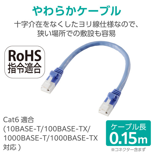 エレコム LD-GPT/BU015/RS LANケーブル CAT6 0.15m ツメ折れ防止 1Gbps 250MHz ギガビット ブルー