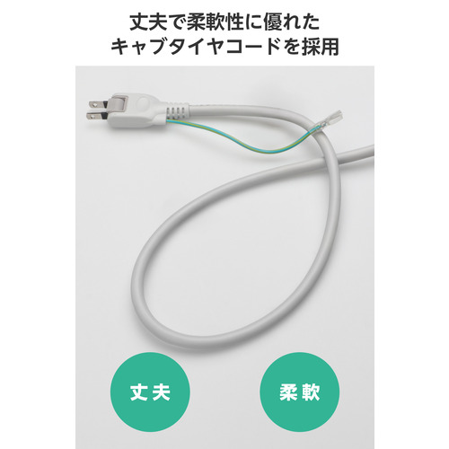 ●電源コードには、PVCの絶縁体とシース(外皮)で構成され、通電したまま移動させることができる、丈夫で柔軟性に優れたキャブタイヤコードを採用しています。