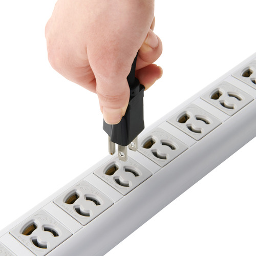 ●10口ある3ピン対応の差込口には抜け止め機能を備えており、プラグを差込口に挿入した状態から少しひねるだけで、簡単にロックと解除の切り替えができます。ロックすることでプラグの意図せぬ抜け落ちを防止できます。