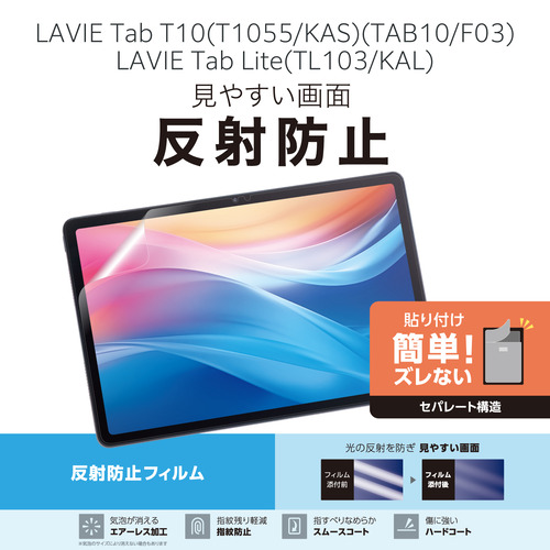 エレコム TB-N252FLA NEC LAVIE Tab T10用 保護フィルム 反射防止 アンチグレア 自己吸着 貼り直し可