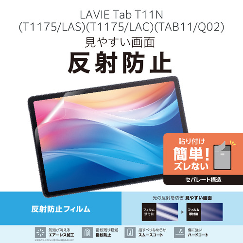 エレコム TB-N254FLA NEC LAVIE Tab T11N用 保護フィルム 反射防止 アンチグレア 自己吸着 貼り直し可