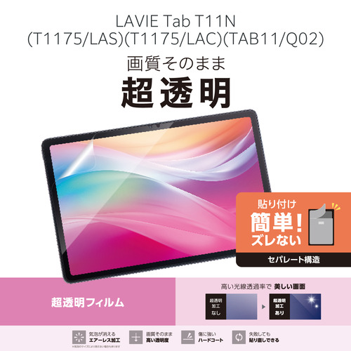 エレコム TB-N254FLAG NEC LAVIE Tab T11N用 保護フィルム 超透明 気泡防止 自己吸着 貼り直し可