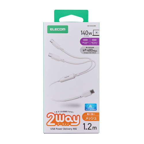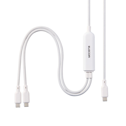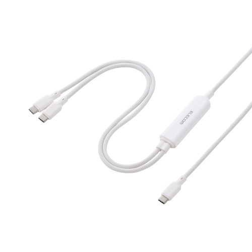 エレコム U2C-CCCA12WH USB-C 充電ケーブル USB Type-C 二股 2in1 140W PD急速充電 ナイロンメッシュ 1.2m ノートPC対応 ホワイト