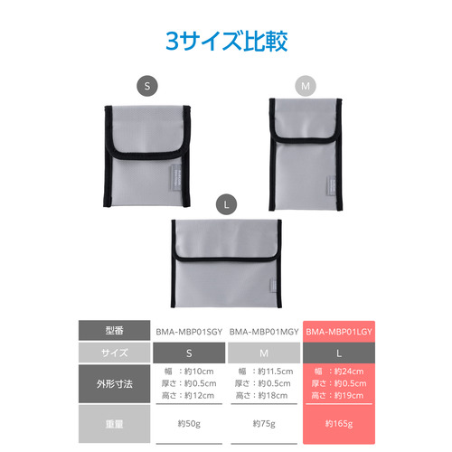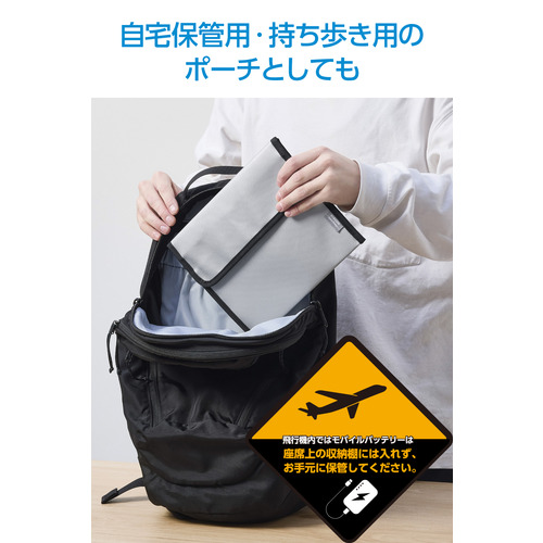 エレコム BMA-MBP01LGY モバイルバッテリー用 難燃ポーチ Lサイズ 機内持ち込み対応 グレー