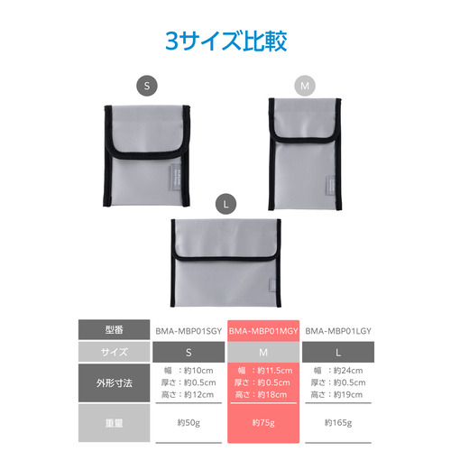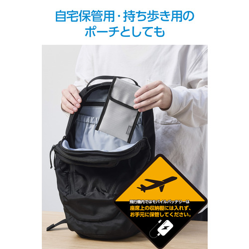 エレコム BMA-MBP01MGY モバイルバッテリー用 難燃ポーチ Mサイズ 機内持ち込み対応 グレー