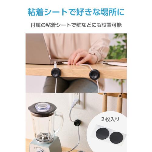 ●粘着シート付きで、自宅・オフィスなど好きな場所にケーブルを固定し、配線をすっきり整理できます。