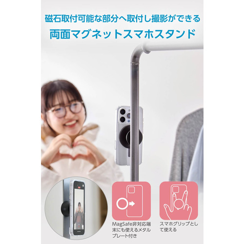 ●磁石が付く場所などにスマートフォンを簡単に固定可能。すぐに撮影できて、使用後の取り外しもスムーズです。