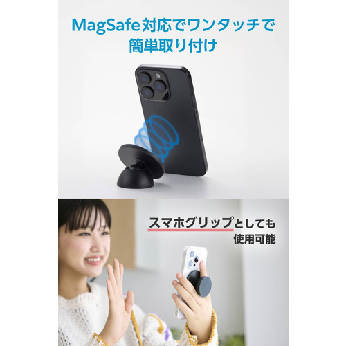 ●MagSafe対応スマートフォンの背面に、マグネットで簡単に着脱できます。