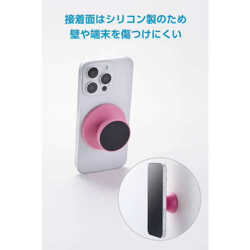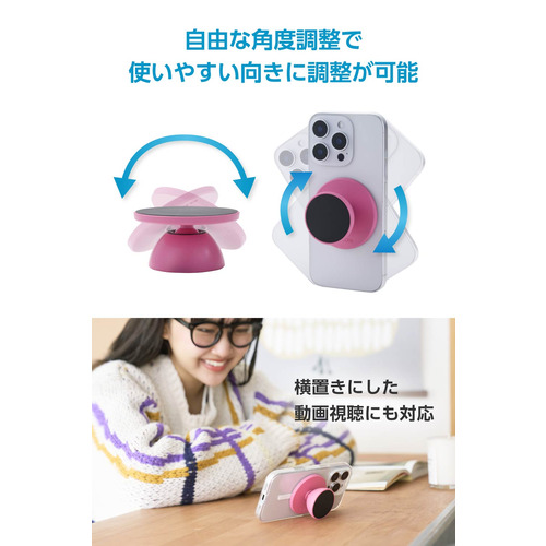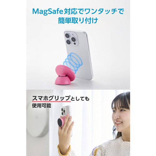 エレコム P-DSMMWPN MagSafe対応 スマホスタンド 両面マグネット 自撮り・ダンス動画・動画視聴 スマホ用 メタルプレート付属 ピンク