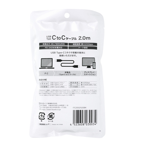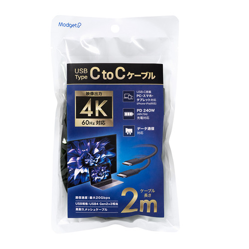 Modget ITC20G2520BK USB4.0 TYPE-C TO C ケーブル 20Gbps PD240W 2.0m ブラック
