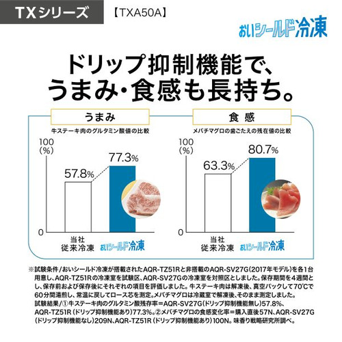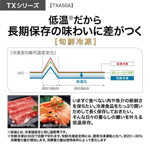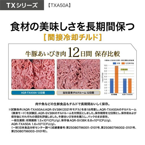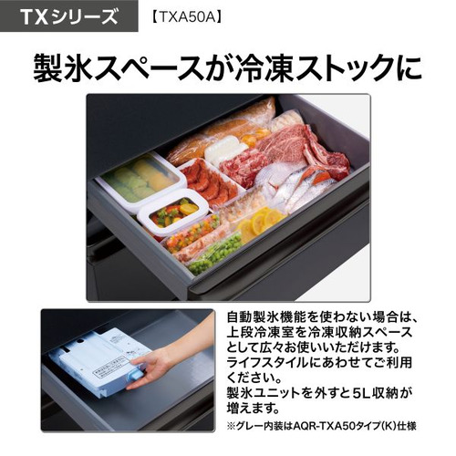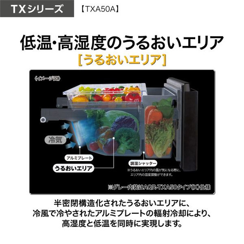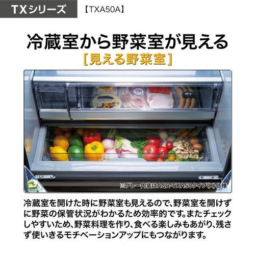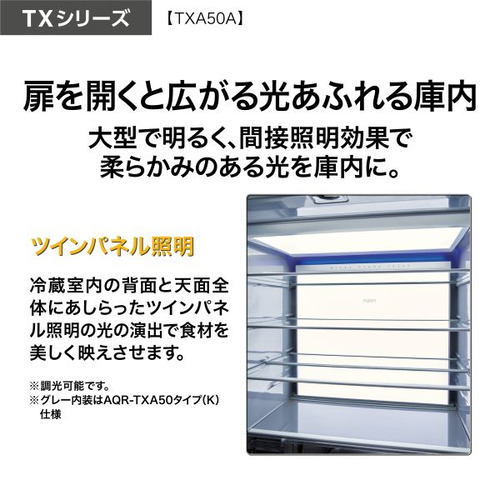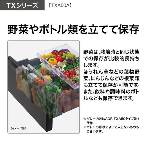 AQUA 冷蔵庫 501L 観音開き 5ドア 幅70cm ツインパネル照明 間接冷却チルド 見える野菜室 AQR-TXA50A(K) ブラック系