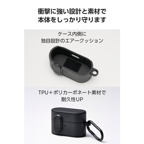 ●落下時の飛び出しを防ぐロック機能と、独自設計のエアークッションで守る、軽く、衝撃に強いソニー WF-1000XM6用TOUGH SLIM Lockケースです。