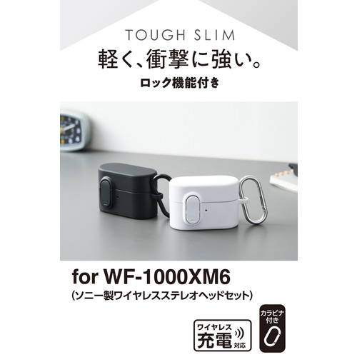 ●落下時の飛び出しを防ぐロック機能と、独自設計のエアークッションで守る、軽く、衝撃に強いソニー WF-1000XM6用TOUGH SLIM Lockケースです。