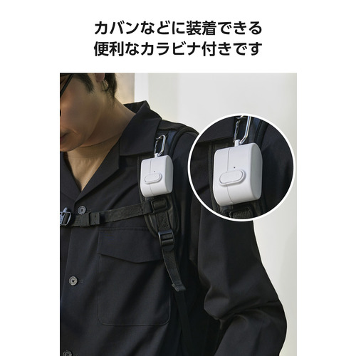 ●持ち運びしやすく、腰やかばんに装着できるカラビナ付き。ケース側面に取り付けることができます。